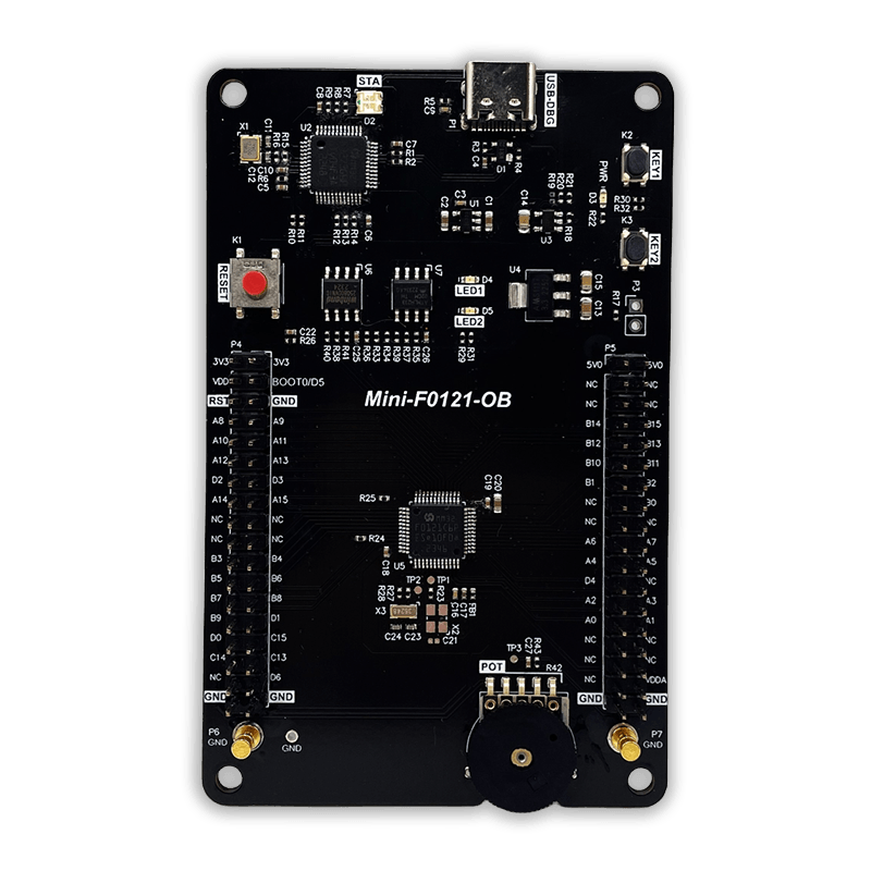 文档说明: Mini-F0121-OB 参考原理图,支持 MM32F0121C6P (LQFP48) 系列